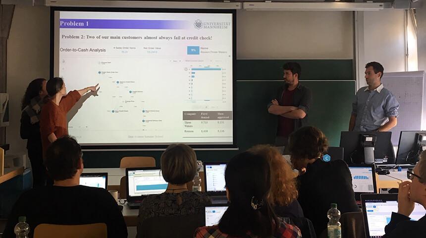 Die Firma Celonis SE gab den Startschuss mit Ihrem Workshop mit dem Titel „Process Mining: The Accelerator for Digital Transformation“. An den beiden darauffolgenden Tagen wurden Themen wie Data Mining und Machine Learning von SAS bearbeitet. Die Studierenden hatten die Möglichkeit Praxiserfahrungen im Zusammenhang mit dem SAS-Studio zu sammeln. Oracle stellte die Oracle-Cloud vor, spannende Erfahrungsberichte und Data Science mit Oracle stand auf der Tagesordnung. Den Abschluss machte Tableau: am letzten Tag der Summer School wurden nach zahlreichen Informationen von Tableau Projektarbeiten von den Studierenden durchgeführt.