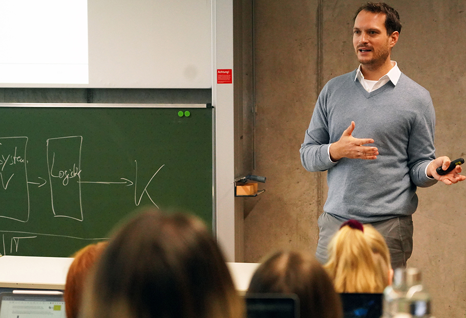 Dem schließt sich Maximilian Merkwitza an. „Er vermittelt die Themen mit Spaß und starkem Praxisbezug und schafft es dadurch, auch die theoretischen Themen mit Leben zu füllen.“ Herausragend sei auch sein Engagement, wenn es darum gehe, Studierende zu unterstützen – sei es bei der Organisation eines Auslandssemesters oder mit Kontakten zu Unternehmen. „Dieses Engagement fordert er aber umgekehrt auch von uns Studierenden: Er möchte, dass wir uns reinhängen und uns interessieren sowie den Sinn des Lernstoffs verstehen und ihn nicht nur wiederkäuen“, sagt Tina Kaworski.